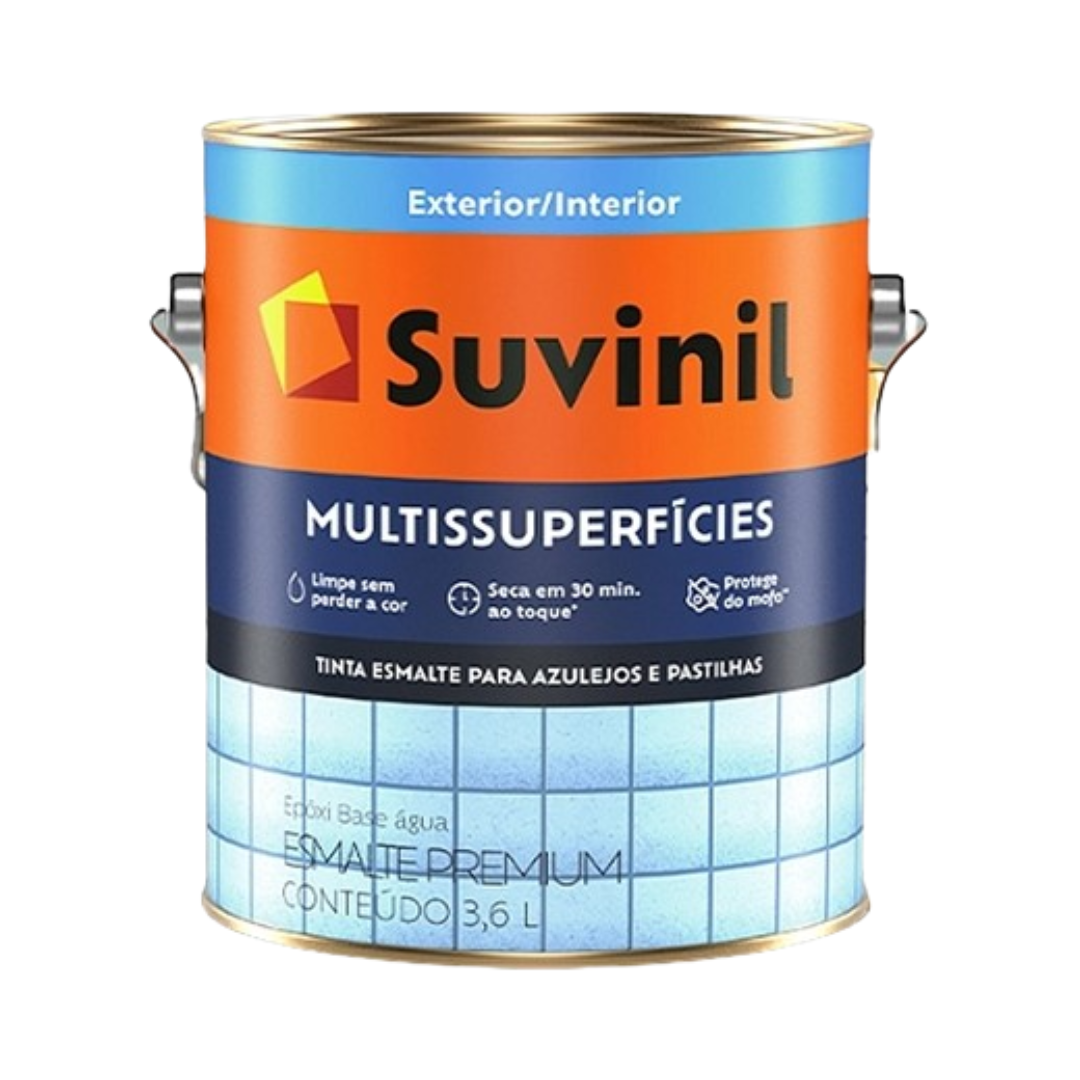 A Tinta Epóxi Base Água Branco Acetinado da Suvinil é ideal para azulejos e diversos materiais, garantindo qualidade, cor e acabamento sem comprometer o resultado. É um produto seguro e eficiente para renovar ambientes. O Suvinil Esmalte Multissuperfícies é indicado para pintar metais ferrosos, não ferrosos, madeira e PVC, proporcionando um acabamento acetinado.
